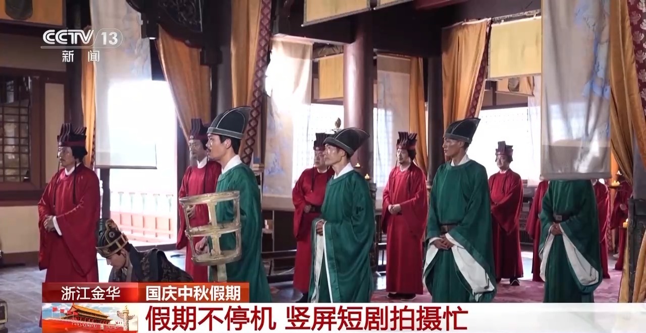 今年国庆中秋假期,浙江省金华市横店影视城竖屏戏剧短片拍摄持续火爆。工作室满负荷运转,50余名团队成员同时工作。