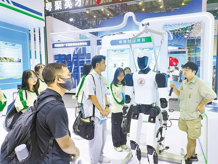 “看,这个机器人正在向我们招手。” 10月26日,在第三届全国博士后创新创业大赛湖北馆外,晋江一中新生王荣超兴奋地带领同学们拿出手机与机器人合影。