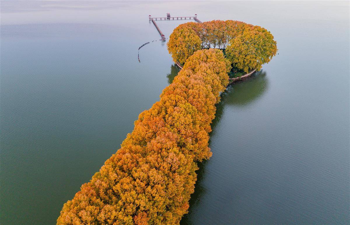 11月4日,航拍“金钥匙”在武汉东湖风景区。近日,武汉东湖风景区的“金钥匙”景区迎来了最美的时刻。的